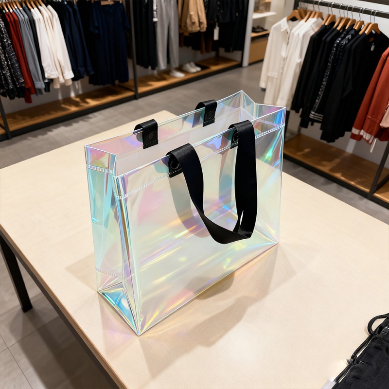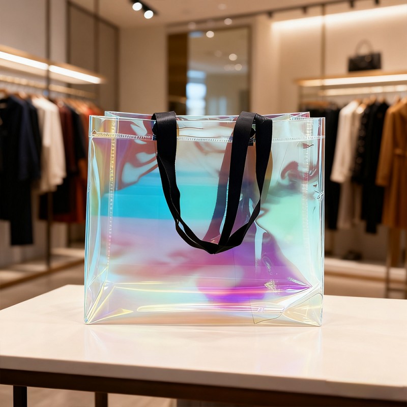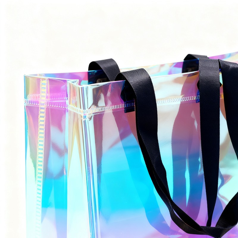 역동적인 시각적 매력: 이 가방의 특수 필름은 관점에 따라 변화하는 놀라운 색상 전환을 만들어냅니다. 이 무지개는 비눗방울처럼 아름다운 빛을 내며 살아있는 예술 작품을 만들어냅니다. 소재 내부의 처리 형태는 장시간 사용해도 퇴색되지 않습니다. 내구성 있는 구조: Rainbow 필름은 표면이 아름다울 뿐만 아니라 탁월한 보호 기능을 제공합니다. 표면은 긁힘 방지, 내마모성, 내습성이 있어 장기간 사용해도 그 효과를 유지할 수 있습니다. 이 핸드백은 고품질 소재와 초음파 접착 기술로 제작되어 시각적 매력과 내구성이 결합되어 있습니다. 뛰어난 커스터마이징: 고객은 레인보우 필름의 아름다운 모습을 통해 브랜드, 상표, 슬로건 및 기타 정보를 완벽하게 선보일 수 있습니다. 100% 반품률은 고객에게 높은 제품 노출을 가져올 수 있습니다. 크기를 맞춤 설정할 수 있으며 특정 브랜드 요구 사항에 따라 핸들을 선택할 수 있어 다양한 마케팅 요구 사항에 유연성을 제공합니다. 환경적 이점: 이 백은 다양한 용도로 설계되었으며 지속 가능한 포장 계획을 지원합니다. 내구성이 뛰어난 구조로 인해 환경에 미치는 영향을 줄이고 브랜드 인지도를 높이면서 반복 사용을 장려합니다.
